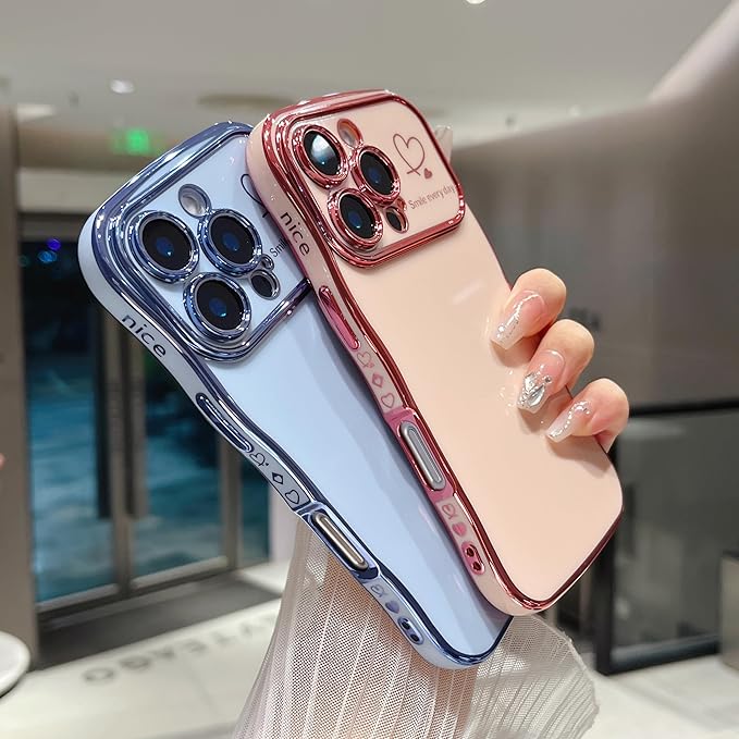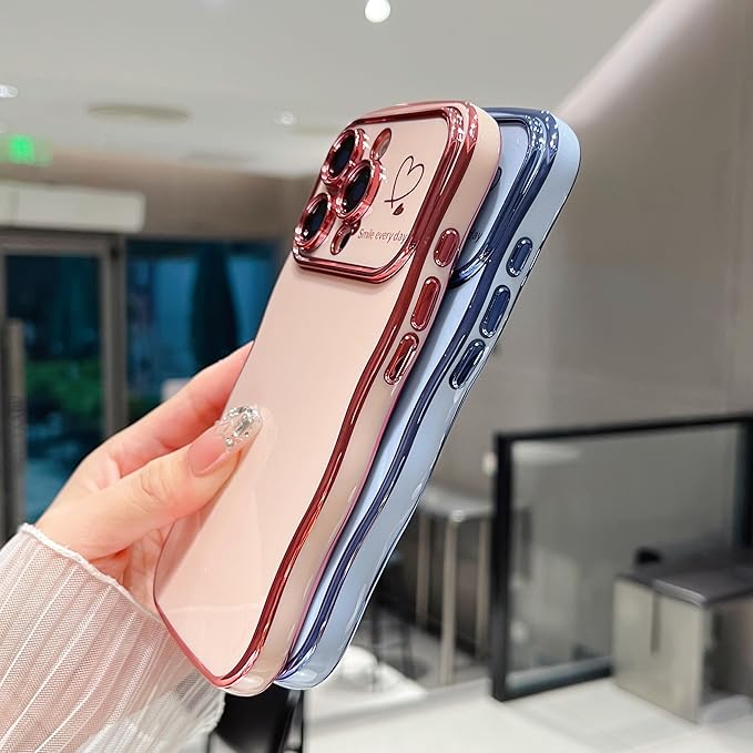 ZTOFERA iPhone 16 Pro Max 用 ハートケース 人気 おしゃれ アイフォン 16 Pro Max ウェーブ ケース 柔軟な TPU シリコン スマホケース メッキ加工 ソフト 軽量 耐衝撃 韓国 可愛い 携帯電話カバー ワイヤレス充電対応 (シエラブルー) | etshop