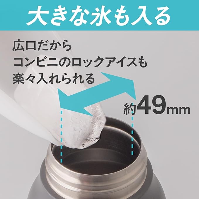 保冷効力(6時間後):9℃以下 実容量(約):600ml 軽さ(約):230g 口径(約):49mm 幅 奥行 高さ(約):74 80 224mm