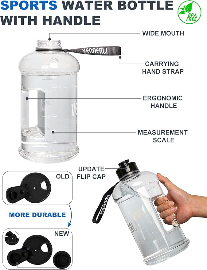 VENNERLI ハーフガロンウォーターボトル 2.2L Lサイズ スポーツウォーターボトル ハンドル付き 72オンス BPAフリー 再利用可能 プラスチックウォータージャグ 漏れ防止 ハイドロボトル ジム ヨガ 旅行 キャンプ サイクリング アウトドアスポーツ用 (クリア) | etshop