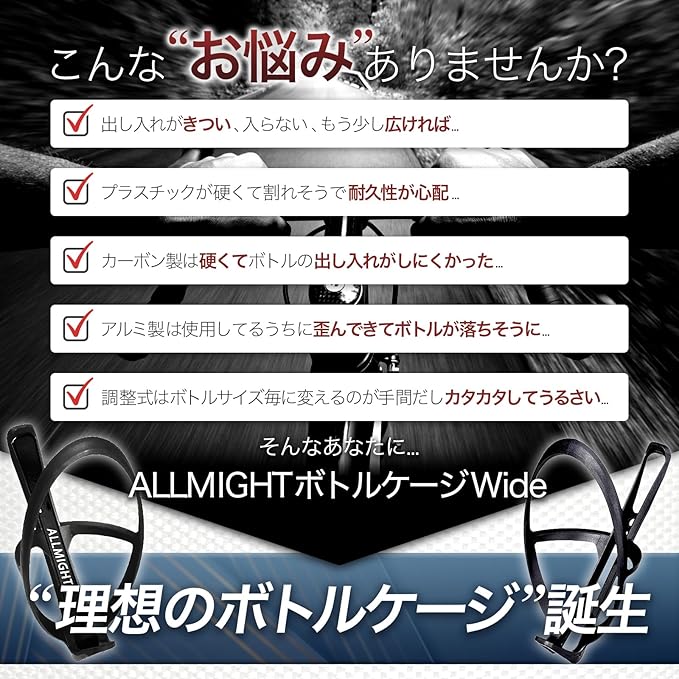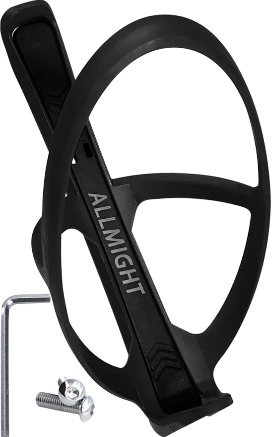 ALLMIGHT ボトルケージ Wide 【超軽量 高耐久】 (ボルトと工具とタイヤレバー付き) 本体重量約19g ドリンクホルダー ボトルホルダー ロードバイク 約75㎜ボトル対応 軽量 (ブラック, 1) | etshop