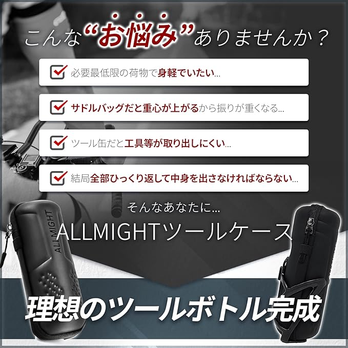 ALLMIGHT (オールマイト) ツールボトル Orthodox 【 最軽量 大容量 】 ジップホルダー付き L20cm ロードバイク 重量約86g PU撥水性上質素材 止水ファスナー | etshop