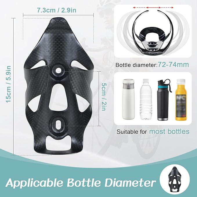【ボトルサイズ】高弾性カーボンファイバーので、直径72-74mmのボトルは入れることが可能です。必要なときに自転車のウォーターボトルにすばやく簡単にアクセスできます。2本のボトルケージを使用して、長時間のサイクリングに最適なパートナーです。