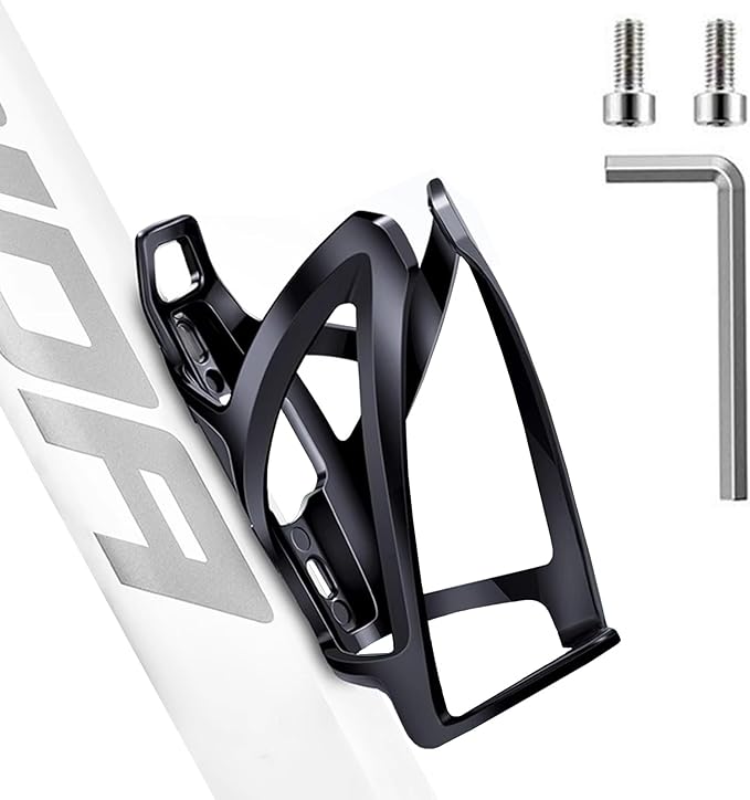 【セット内容】ブラック自転車のボトルホルダー 1、ステンレス製のネジ2 + 1スパナ。
