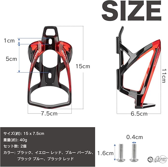 約40gの軽量設計で、ロードバイクやクロスバイクに取り付けても走行性能を損なうことなく、快適なライディングを実現するボトルケージ2個セットです。5カラーご用意いたしましたので、お好みに合わせてお選びください。