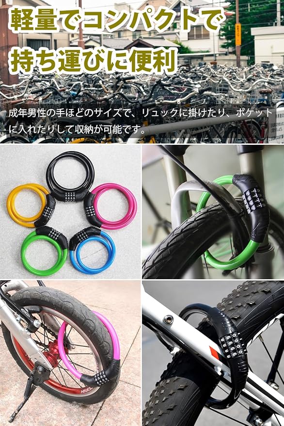 ✅【携帯便利】成年男性の手ほどのサイズで、リュックに掛けたり、ポケットに入れたりして収納が可能です。ダイヤル式のワイヤーロックとなっているため、短時間の駐輪で目を離す際でもお手軽にロックしていただけます。