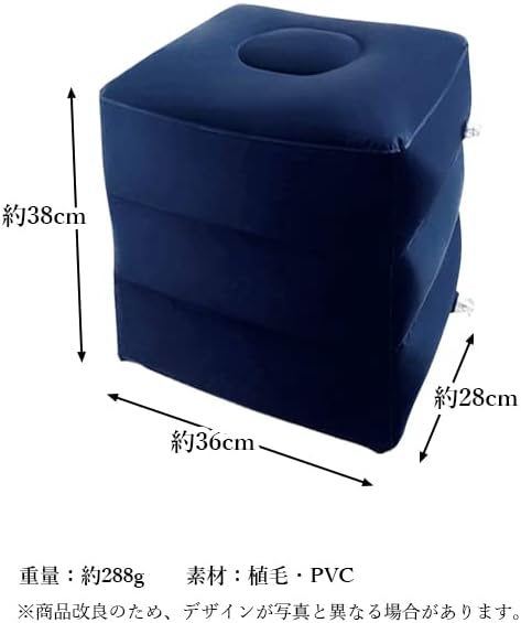 ・空気を入れるだけで簡単に設置できるフットレストです。 ・空気入れが2か所あるので高さを3段階調節可能です。 ・飛行機、新幹線、長距離ドライブなど様々なシーンで活躍します。 ・ソファーから足を伸ばしたいときや、デスクワークで足を休めたいときなどにおすすめです。 ・使用しないときは折りたたんでコンパクトにすることができます。 【商品仕様】 カラー ネイビー 素材 植毛PVC フットレスト ネイビー 空気 三段階 エアータイプ オットマン クッション 足置き 足乗せ 足枕 リラックス 快適