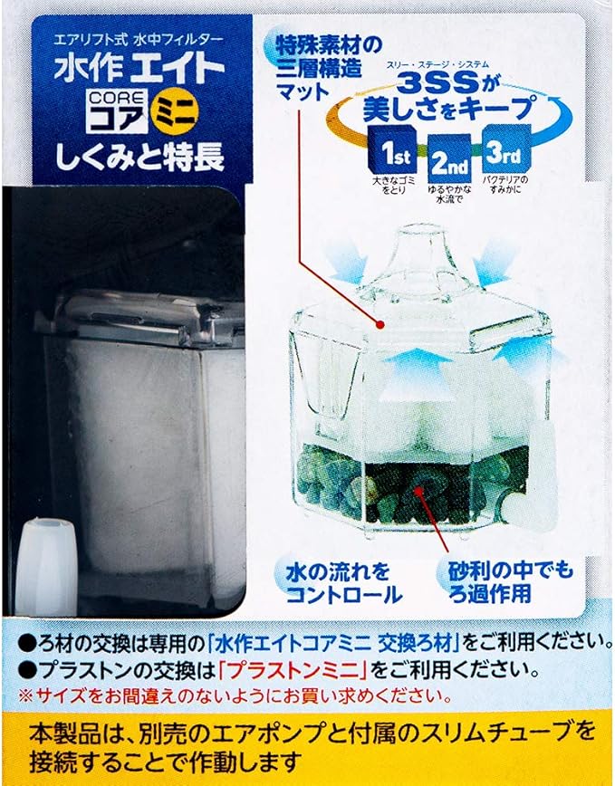 小型水槽に最適なコンパクトサイズ。●適合水槽:5リットル以下 ※ボトムプレート各種、エアパイプユニット各種は使用できません。