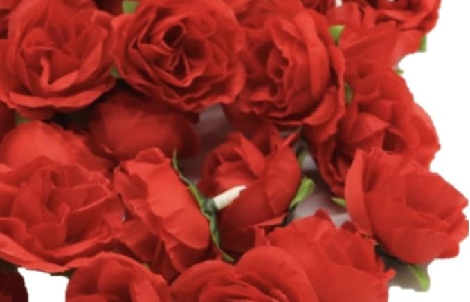 直径3cmの鮮やかな色の赤いミニバラが50個入ったセットです。