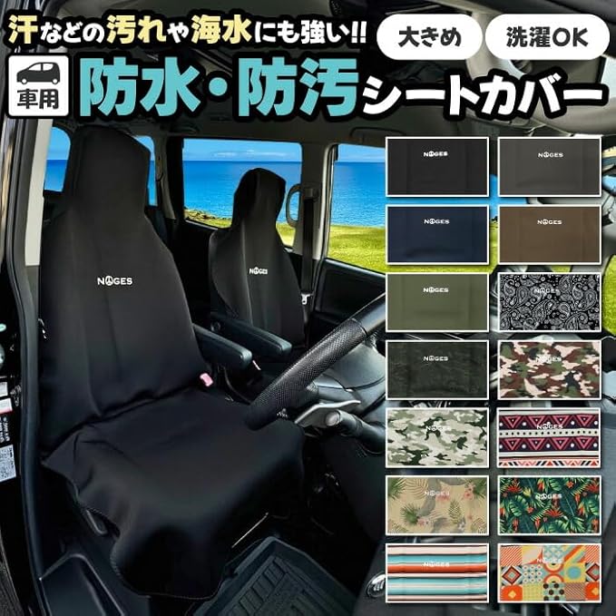 NOGES シートカバー 防水 車 カーシートカバー カバー シート フロントシート用 サーフィン 釣り 汎用 簡単取りはずし! ずれにくく完全防水で濡れたまま座れる ウェットスーツ素材で丸洗いもOK! (チャコールグレー)