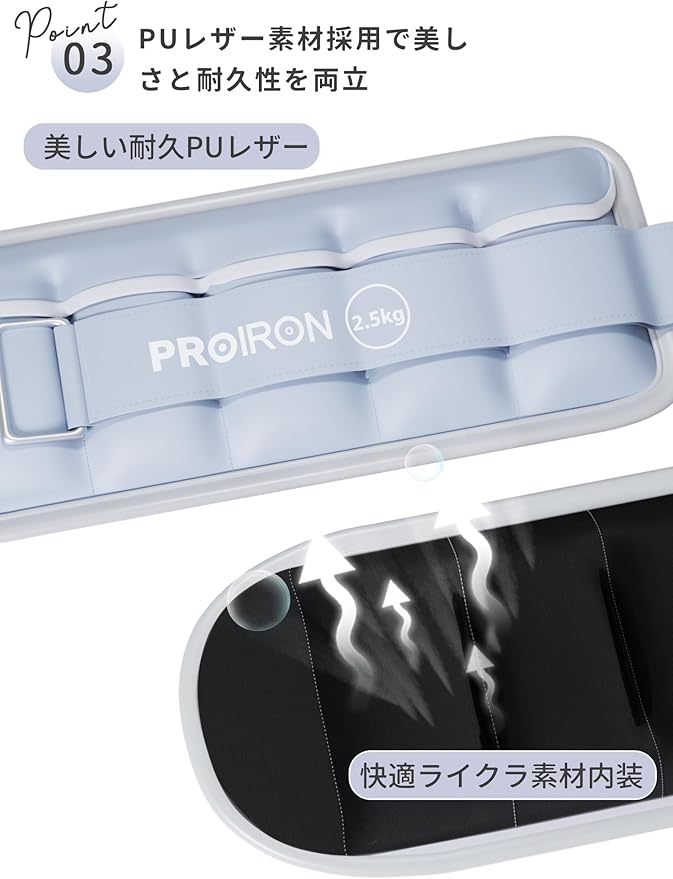 【薄型設計で脚にフィット、運動中もぐらつかない】(5つの小型砂袋で均等分散)重量が分散されるため、一体型のサンドバッグのように滑動せず、ランニングやスクワット時も安定。(高密度鉄砂)通常のサンドバッグより体積30%削減、パンツの下に着用しても目立ちにくい。(二重防漏設計(縫製+内袋))激しい動きでも砂漏れなし。