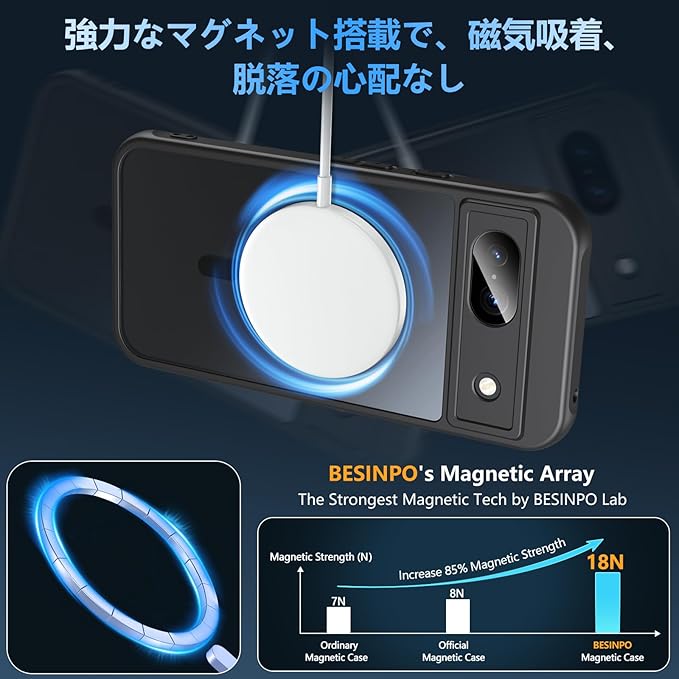 【MagSafe対応・より便利】最新型の強力なマグネット搭載で差し込みのいらない超簡単充電を実現し、吸着力、安定性に優れ、いつでもどこでもワイヤレス高速充電を体験できます。また、MagSafeバッテリー、MagSafeカードケース、MagSafeワイヤレス充電器、MagSafeリング、MagSafe車載ホルダーなど、MagSafeを使用するシーンに対応した Google Pixel 8a ケース なので、Magsafeの便利さを満喫しましょう!