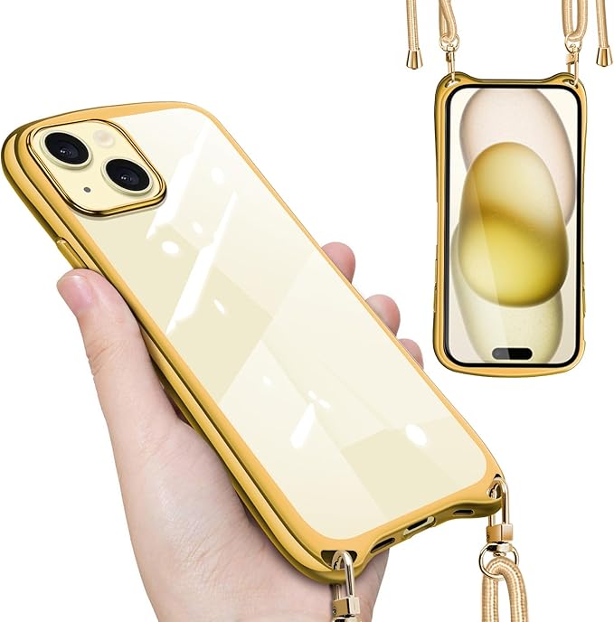 Yidahe iPhone 15 用 ケース クリア ショルダー ストラップ付き アイホン15 カバー iPhone15 用 カバー 透明 肩掛け 縄掛け 斜めかけ TPU メッキ加工 耐衝撃 全面保護 薄型 韓国 可愛い iPhone15 用 6.1インチ 対応 スマホケース (ゴールド) | etshop