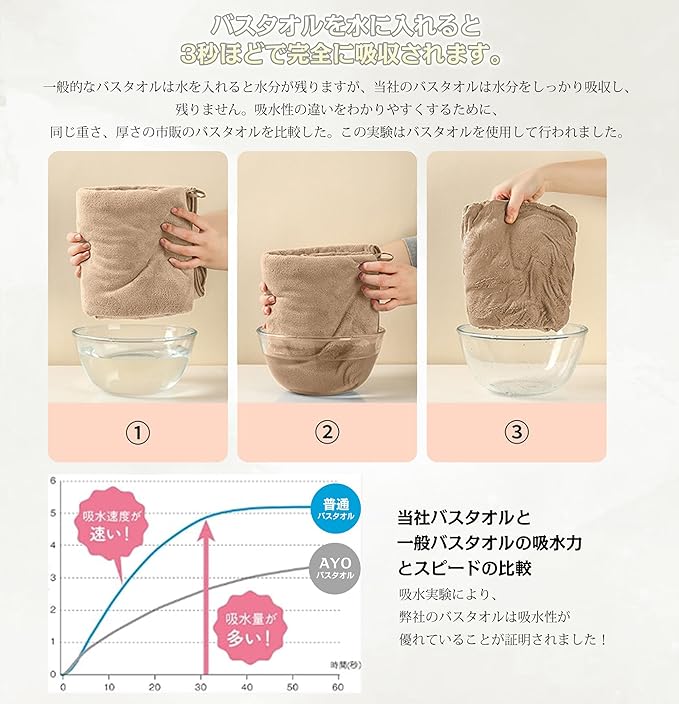 【マイクロファイバー素材】丁寧に織り上げた高品質極細繊維です。一般的なマイクロフアイバ-のタオルと比ベて約2倍以上のボリュ-ムがあり、ふんわりと包み込まれるようなリッチな使い心地。両面ともに厚手なのが機能性がさらにアップです!特徴:吸水速乾、軽量、糸抜け防止、通気性が強い、静電気なし、蛍光なし。想像を超えるふわっふわの触り心地なので、大人だけでなく敏の肌も每日を心地よく包みこみます。