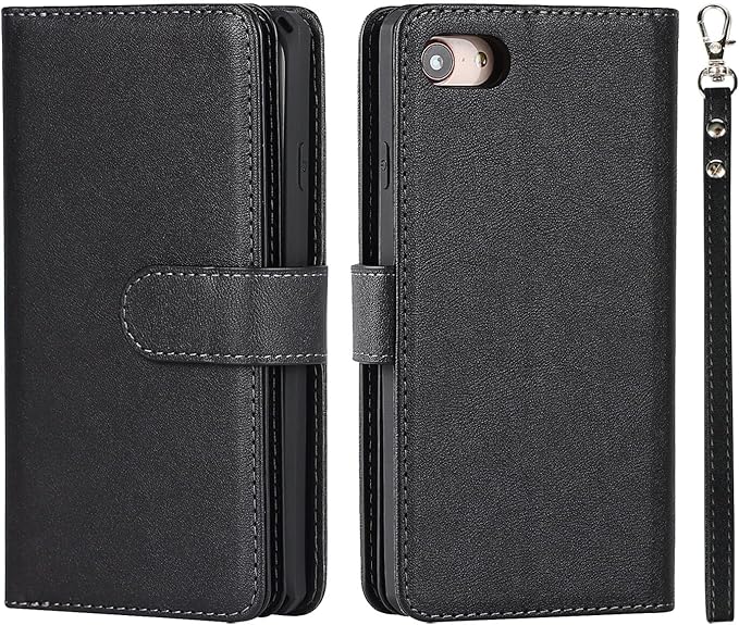 Pelanty 取り外し自由 両用ケース for iPhone SE 第3世代 2022/SE 2020 第2世代 2in1ケース手帳型 ストラップ付き for iPhone 7/8 分離式 2way 背面カバー 大容量 財布型カード収納 小銭入れ札入れ 携帯カバー 合成PUレザー+TPU スタンド機能 縄掛け マグネット 耐衝撃 アイフォン7/8/SE2/SE3(ブラック)
