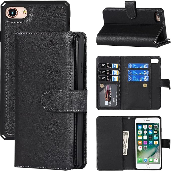 Pelanty 取り外し自由 両用ケース for iPhone SE 第3世代 2022/SE 2020 第2世代 2in1ケース手帳型 ストラップ付き for iPhone 7/8 分離式 2way 背面カバー 大容量 財布型カード収納 小銭入れ札入れ 携帯カバー 合成PUレザー+TPU スタンド機能 縄掛け マグネット 耐衝撃 アイフォン7/8/SE2/SE3(ブラック) | etshop