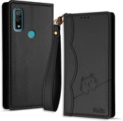 Kedic Arrows We FCG01 ケース Arrows We F-51B ケース 手帳型 可愛い笑顔の猫模様 手作り Arrows We F-51B 携帯カバー おしゃれ カード入れ 財布型 と横方向のスタンドが 多機能 Arrows F51B カバー 内蔵マグネット式 純色シンプルデザイン アローズWe FCG01ケース 黒