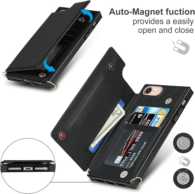 GOKIGIOD 適用 iPhone SE 第2世代 第3世代 7 8 全通用 ケース ショルダー 窓口式 カード入れ スマホケース ストラップ付き アイフォン7 アイフォン8 カバー 手帳型 斜めがけ 可愛い いphoneSE2 いphoneSE3 ショルダーケース 首かけ 肩掛け かわいい おしゃれ RFIDスキミング防止機能 ロング クロスボディ 携帯カバー ブラック | etshop