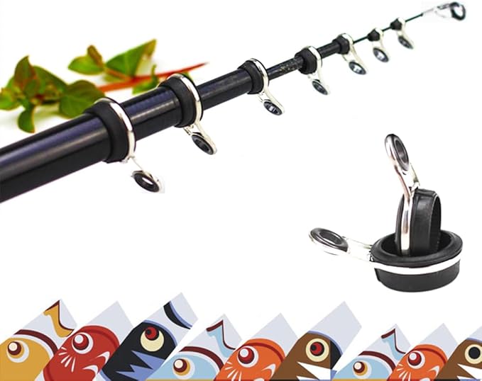 【材質】このロックスロッピング用の釣りガイドは、耐摩耗性セラミックとステンレス鋼で作られており、優れた強度と変形抵抗能力を備えています。大物の引きや頻繁なキャスティング操作にも耐え、破損しにくいため、ロッド全体の寿命を保証します。