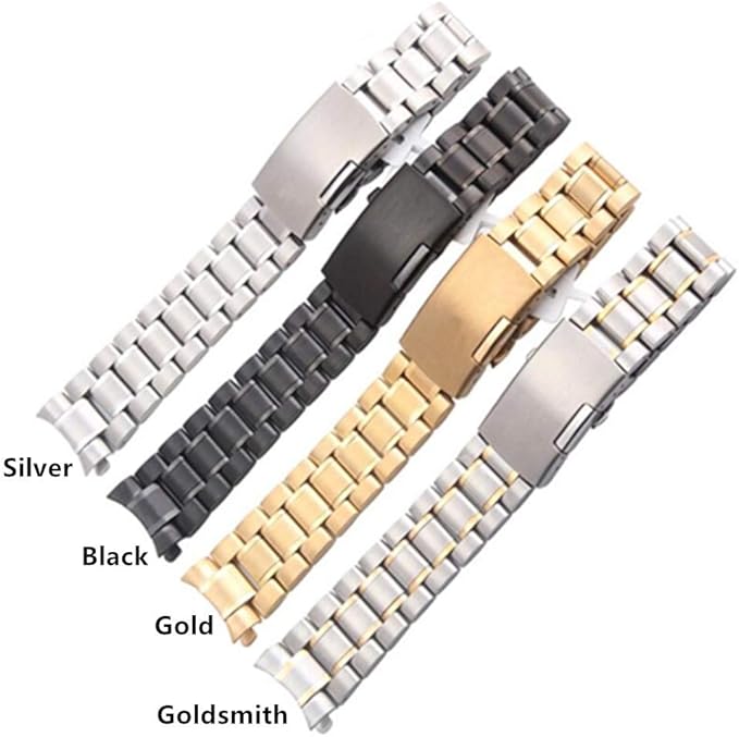 ステンレス無垢の3連ベルトです。 バックルはチュチマなどにも採用されているサイドプッシュ式になります。 爪を傷めることなく取り外しができます。 弓カン一体型となりますので直カンにはご利用できません。 ステンレスベルトは巻き込みタイプが多くチープさが隠せませんがこちらは無垢で質感も高いお品です。 お持ちの時計の気分気分転換に劣化したベルト交換にどうぞ