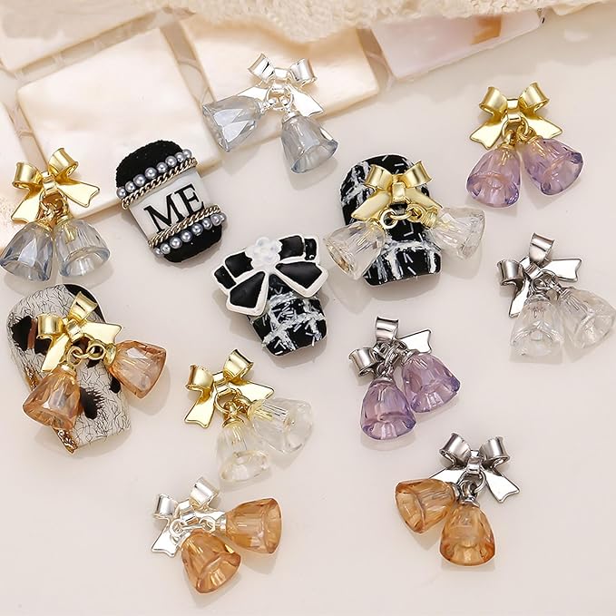 ラインストーン ネイル クリスマス 12個セット かわいい 小さい ベル ネイルストーン クリア メタル リボン付き カラフル クリスタル ジュエリーパーツ ネイルアート ハンドメイド デコパーツ