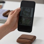 ★木材で作られたスマホスタンド。あたたかみが感じられるナチュラルな木目特徴です。横置き・縦置きの両方で使えるのも魅力。横置きによって、充電ケーブルを挿したままでも使用できます。