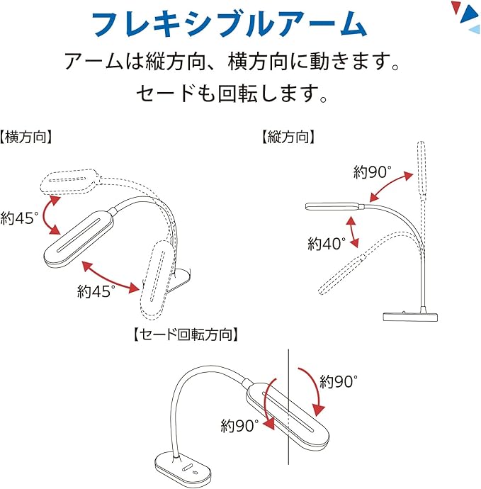 ● フレキシブルアーム● 全光束 約170ルーメン● 照度 約950ルクス(直下25cm)● 本体カラーはホワイト