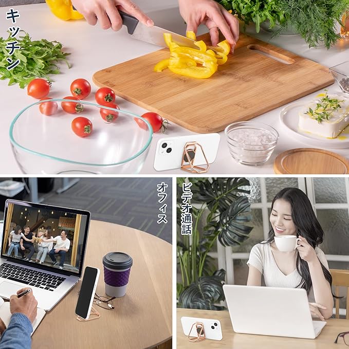 【3層構造と折りたたみの創造性】バンカーリング は3層デザインは無限の可能性を提供します。 想像力を駆使して、さまざまな折り畳み方法を見つけたり、机、キッチンキャビネット、ベッドサイドテーブルなど、さまざまな場面に最適な折り畳みを見つけたりできます。 このデスクトップフォンスタンドを自宅に置くと、料理をしながらレシピを見たり、テレビやLINEを見たりすることができます。(ホルダーを使用する際の安定性を高めるために、ステントはできるだけ三角形状にする)