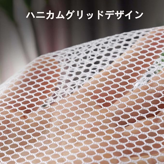 【通気性】生地はメッシュ状になっているので、細かいメッシュが扇風機の風を適宜に抑え、やわらかく自然な風あたりになります。