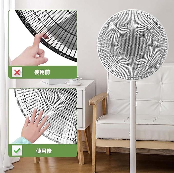 【防塵性】防塵ファンネットカバーは、大部分のほこり、汚れ、花粉からファンを保護するのに役立つ。羽への埃の付着が少なくなり掃除なしでそのまま次のシーズンまで保管できます。