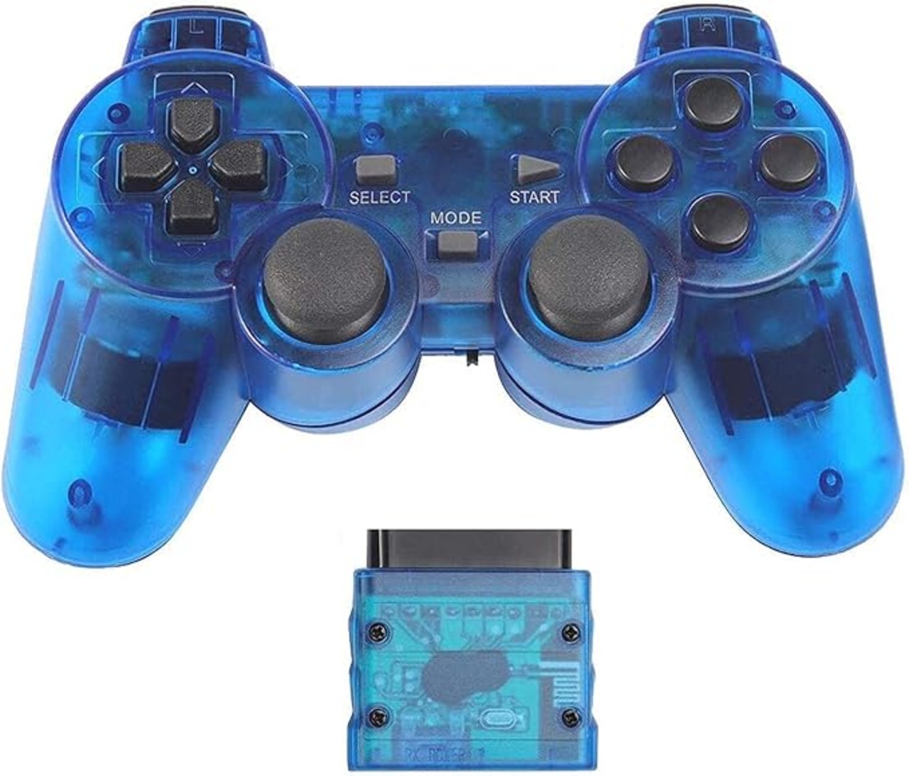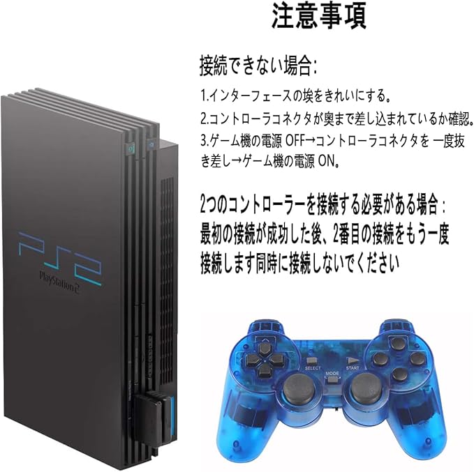 Fancyan PS2 用 ワイヤレスコントローラー DUAL SHOCK2 ゲームパット 互換対応 日本語説明書 (透明ブルー)
