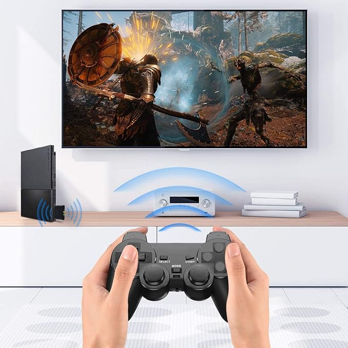 【デュアルショック対応】PS2 用アナログコントローラ/デュアルショック2と同じボタンを配置!あなた がゲームに正しいように、すべての影響を作るようにそれぞれのアクションでゴロゴロする圧力センサー 。レーシング、ファイティング、スポーツゲームに最適なダブルバイブレーションフィードバックモーターを内蔵しています。