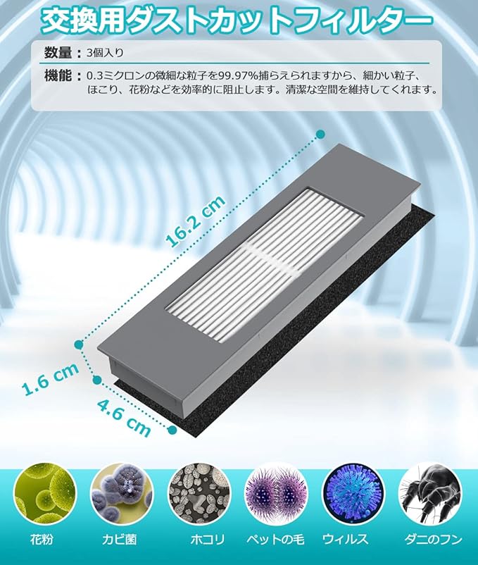 【掃除機本来の吸引力と清浄力を回復】0.3ミクロンの微細な粒子を99.99%捕らえられますから、細かい粒子、ほこり、花粉などを効率的に阻止します。清潔な空間を維持してくれます。