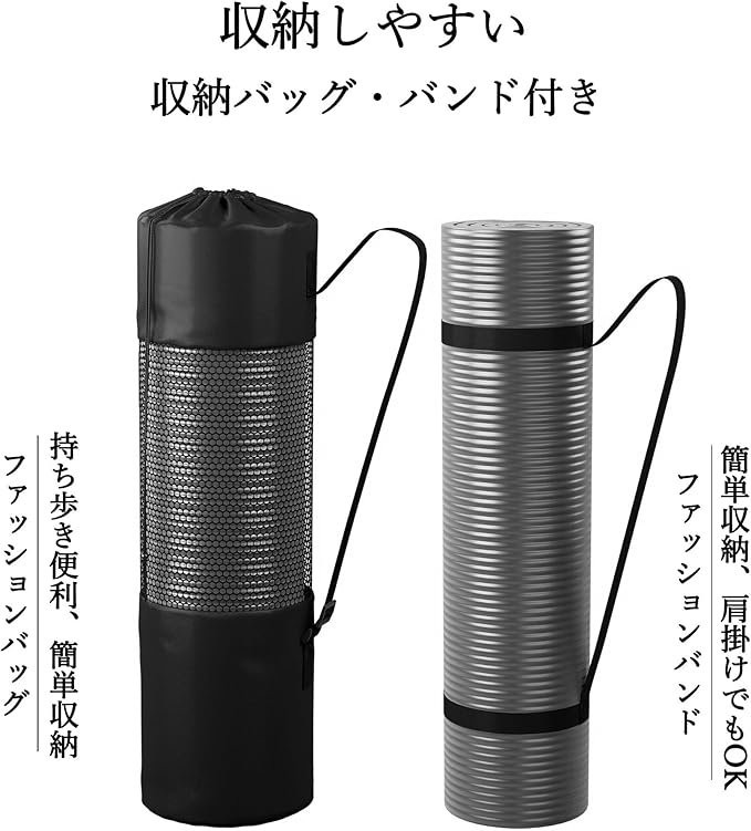 Reodoeer ヨガマット 厚め トレーニングマット エクササイズマット ストレッチマット 収納バンド 収納バッグ付き 厚さ10mm