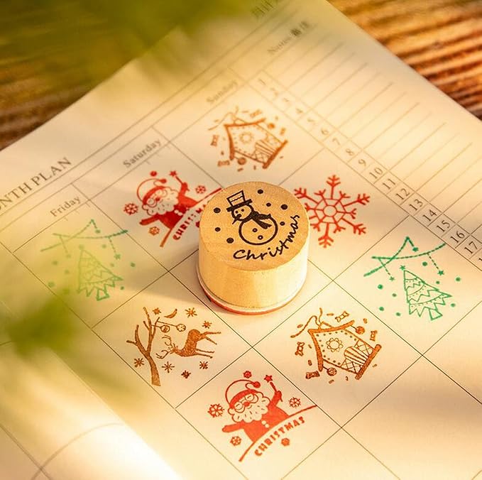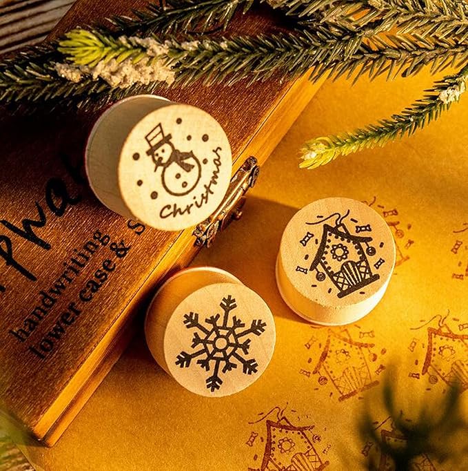 【LEISURE CLUB】木製スタンプ 6コセット 花柄模様 ゴム印 手紙用 グリーティングカード DIY デコレーション クリスマスツリー サンタクロース トナカイ ツリー 雪の結晶 雪だるま クリスマス 正月 成人の日 バレンタイン ホワイトデー 雛祭り タンプ
