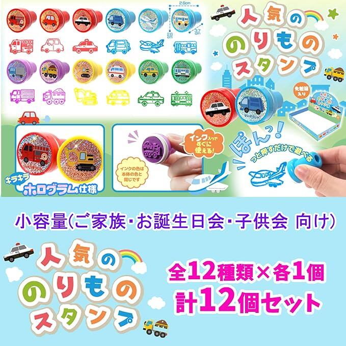 三洋堂 のりもの 丸型 ミニスタンプ 全12種 各1個 計12個セットをお届けします。( 小容量 ご自宅 お誕生日会 お楽しみ会 向け)