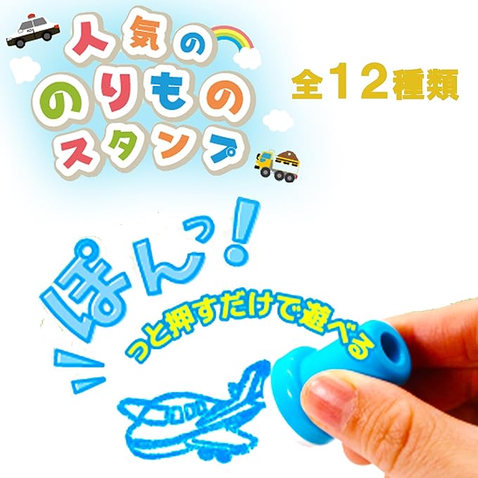 みんなの街で大活躍!乗り物・飛行機のスタンプが登場しました!種類は全部で12種類!全部カッコよく仕上がってます! インク入りですので片手でポンッと押すだけです!ポンポン押してみなさまでお楽しみください!
