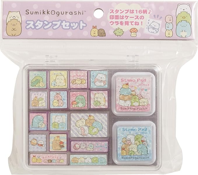 すみっコぐらしのスタンプセットです!スタンプ16個、スタンプ台2個、インク色赤、青☆