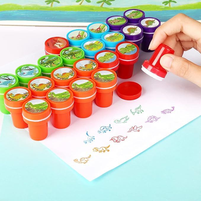 たっぷり24個(10種、中には2種が4つあり)のかわいい恐竜柄のスタンプが入ったセットです。
