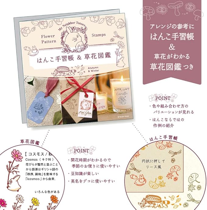 トトロ達と一緒に日本の草花を彩って、季節の移り変わりを楽しめるデコはんこ