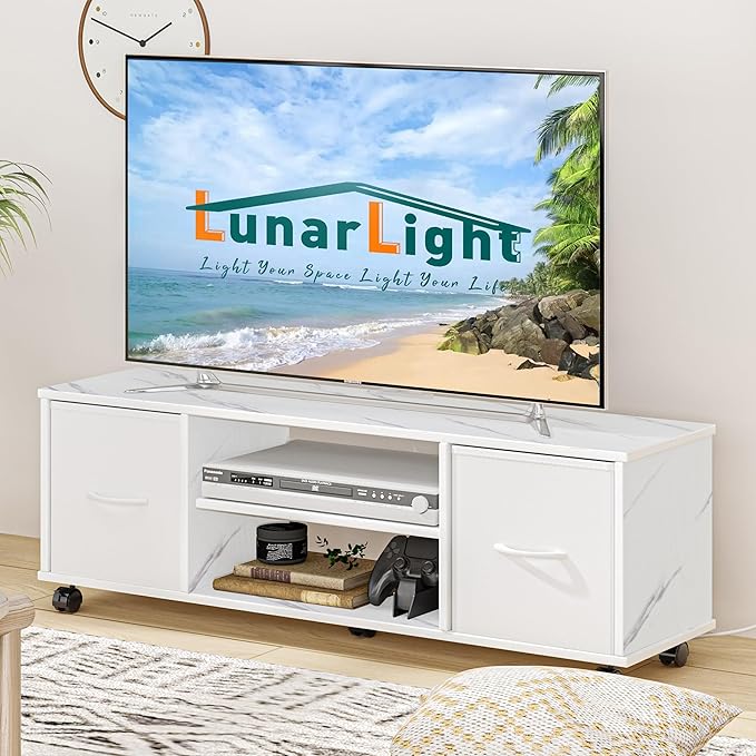 LunarLight テレビ台 幅109.5奥行28.6高さ36.8cm テレビボード ローボード コンセント付き 布製引き出し付き 多機能収納ボックス 収納棚板調整可能 32型 42型 55型テレビ適合 収納 組立簡単 工具不要 耐震転倒防止 耐荷重100kg (大理石調ホワイト)