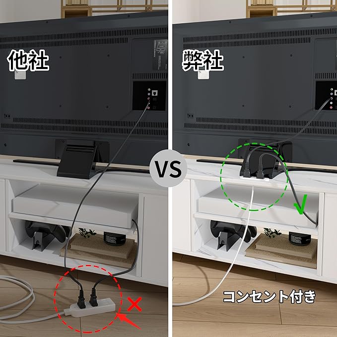 【多機能収納テレビ台】32 42 55型対応テレビタイプにはDVD、AV機器やゲーム機を置くのにちょうどいい天板と、A4サイズの雑誌も収納できる棚板付き。2口コンセントがあり、配線もすっきり整理可能。そして、布製引き出しが2個ついて、たっぷり収納できます。