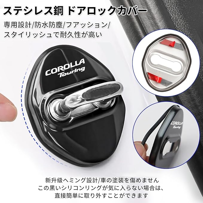 【カローラツーリング 専用】ドアロックカバー保護アクセサリーは カローラツーリング 適用される。Corolla Touring 専属車標識を印加し。ドアを開けた時のさりげないお洒落。