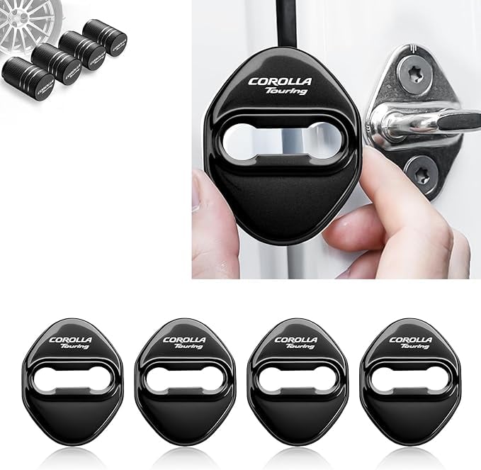 【カローラツーリング 専用】車 ドアストライカーカバー Corolla Touring カローラツーリング アクセサリー カスタム 専用 パーツ, ドアロックカバー 傷防止 保護 高級鏡面ステンレス製 独創 改良式 4個セット(贈り物: タイヤ バルブキャップ) (ブラック, カローラツーリング) | etshop