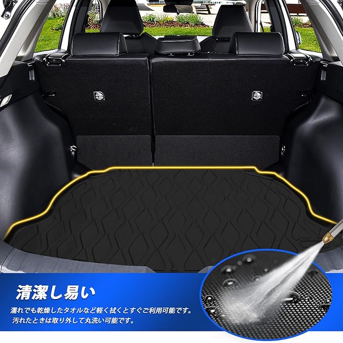 【車種別専用設計】:このラゲッジマットはジャストフィットでずれない専用設計となっております。日常やレジャー、アウトドアで様々なモノが詰まれるラゲッジスペース。そのラゲッジスペース汚れからカバーし、心遊びと実用性を兼ね備えたのカスタム ラゲッジマット。