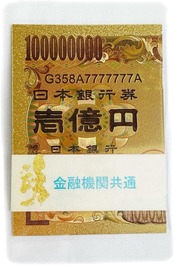 帯は実際に銀行で使われている本物です。その上に金箔が散りばめらています。白蛇抜け殻もついていますので金運アップが期待できます。