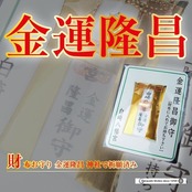 金の羽織がかかった金運アップのカード型お守りです。お財布などに入れてお持ちいただけます。