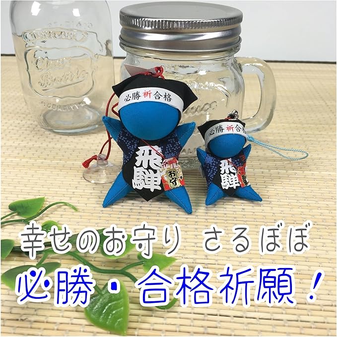 気持ちをリラックスさせてくれる青色の「必勝・合格さるぼぼ」!がんばってるあなたに、「幸せが訪れますように」と願いを込めてお届けします。