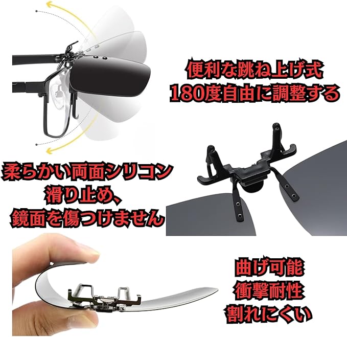[Aillynas] サングラス クリップオン 偏光 UV400保護 メンズ レディース メガネの上から装着 跳ね上げ式 超軽量 ワンタッチ装着 運転用 釣り用 スポーツ用 アウトドア用 夜間運転用 便利なクリップ式サングラス