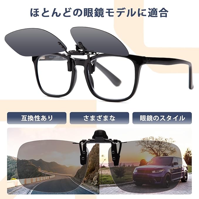 [JO] JIMMY ORANGE 偏光サングラス 跳ね上げ式 眼鏡の上から クリップオンサングラス メガネ拭き ケース付 UV400 紫外線カット 幅広 運転用 人気 釣り用 クリップオン | etshop
