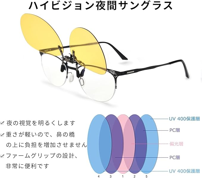 [SOXICK] サングラスクリップオン 運転用 変色 調光 偏光グラス 前掛けクリップ式 超軽量 UV400 紫外線カット 昼夜兼用 ドライブ 運転用 野球 自転車 ランニング ゴルフ | etshop